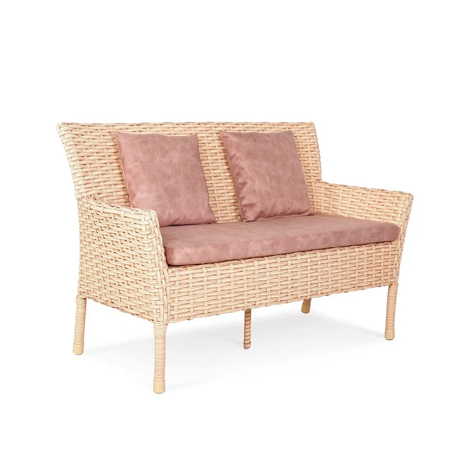 Диван VENEZIA двомісний алюміній/ротанг "солома"