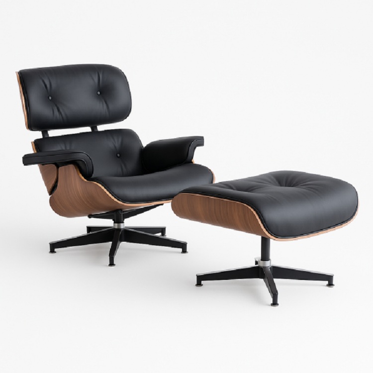 Супер крісло з отаманкою для повної релаксації.Сидіння, спинка з підголовником та підлокітники виготовлені з 7 шарів формованої гнутої фанери зі збереженням текстури полірованої гнуто-клеєної деревини, шпон колір палісандр або рожеве дерево, а сполучні деталі створюють унікальну форму, матеріал оббивки натуральна шкіра. Подушки сидінь з"єднані за допомогою чорної застібки, яка вшита по зовнішньому краю, для амортизації використовуються гумові шайби. Внутрішня підтримка забезпечується за рахунок вбудованих роликів та спеціальних кілець.