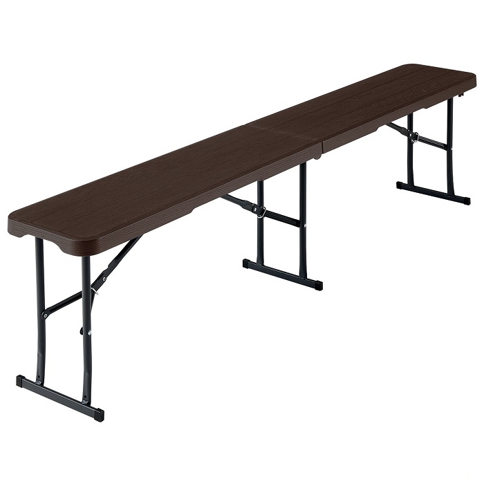 Складна лава з металевою системою трансформації 180х90х43h. Ширина 25 мм. Основа – пластик, що імітує дерево. Вона складається навпіл у вигляді "дипломата", що зручно для перевезення. Може експлуатуватись на відкритому повітрі.