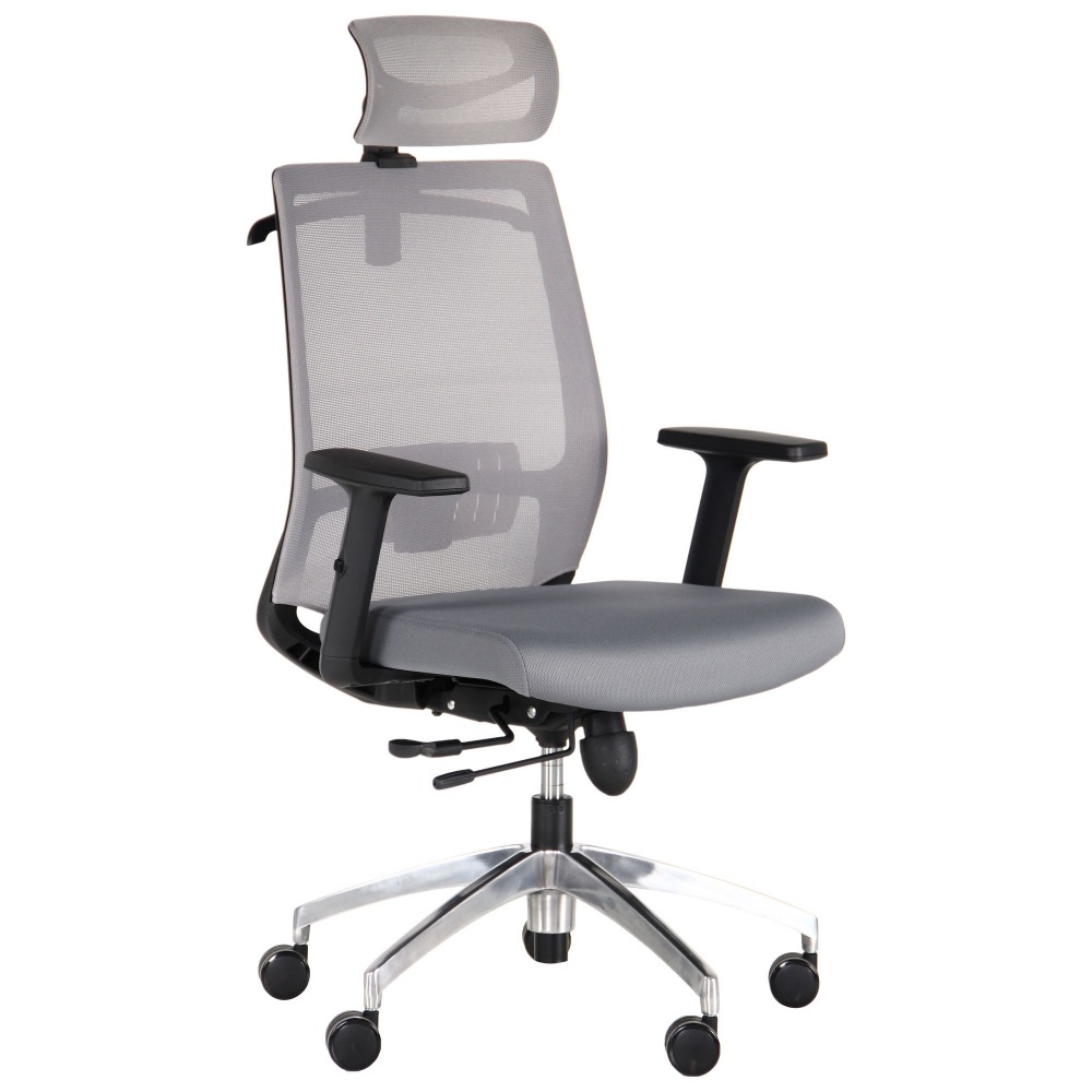Крісло з покращеними характеристиками та матеріалами - регульовані з багатьма ступенями свободи підголівник та підлокітники, що підтримує валик для хребта, хрестовина з полірованого алюмінію, багатофункціональне керування.