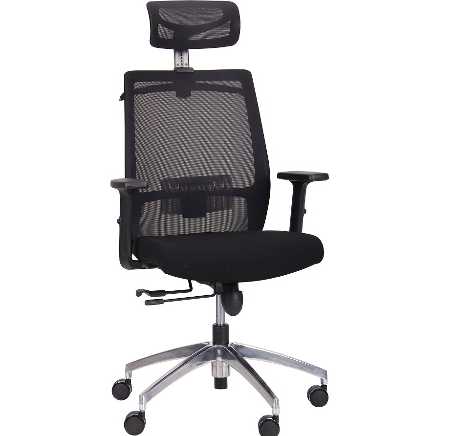 Крісло з покращеними характеристиками та матеріалами - регульовані з багатьма ступенями свободи підголівник та підлокітники, що підтримує валик для хребта, хрестовина з полірованого алюмінію, багатофункціональне керування.
