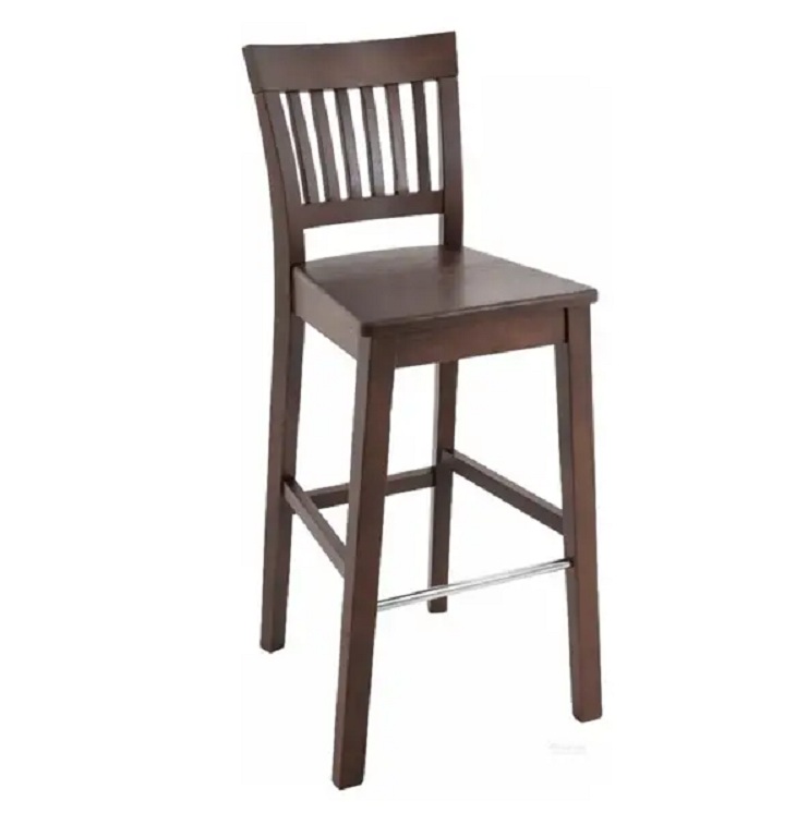Відмінна риса цього виробу – металева підніжка, що захищає її від стирання. Стілець барний (висота сидіння 710см). Матеріал - натуральна деревина - ясен, обробка - горіх каркас а також горіх тверде сидіння. Завдяки своїм універсальним характеристикам цей стілець має широкий діапазон застосування - для ресторанів, ПАБ, до барних стійoк, а також для будинку в кухонних "острівках" та ін.